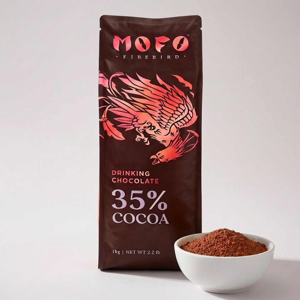 MOFO Firebird 35% has rich and true chocolate taste. It is an all natural ingredients cocoa powder because it has no fillers, starch, added flavours, colours or preservatives. Koko Deluxe chocolate powder is a pure natural indulgence. There is nothing to hide or enhance the flavour of this premium hot chocolate powder.