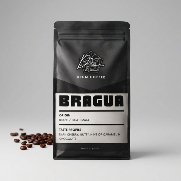 Bragua is a dark roast coffee by Drum Roastery, a local coffee roaster based in Kelantan, Malaysia. You can buy these roasted coffee beans online. By Auresso, a trusted roasted coffee beans supplier in Malaysia. Now you can buy coffee beans online!