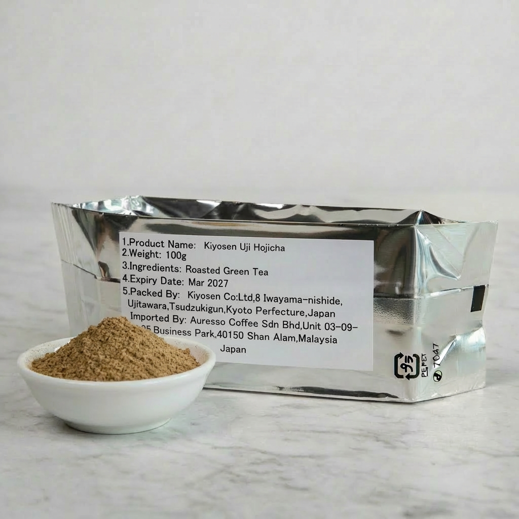 Auresso takes great care of the product being the distributor and supplier of Kiyosen green tea hojicha powder in Malaysia. Kiyosen pack our orders in strictly 100g foil packs. This ensures that when you open a bag, only a small amount of powder is exposed at any point of time. As long as you close the pack and seal in an air-tight container after use, the hojicha powder will stay fresh, even better if you refrigerate it. While this small packaging increases cost, we find that operationally it is a very sustainable solution for both home and business use.